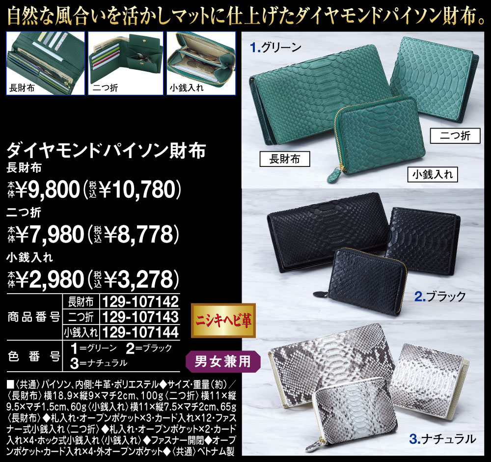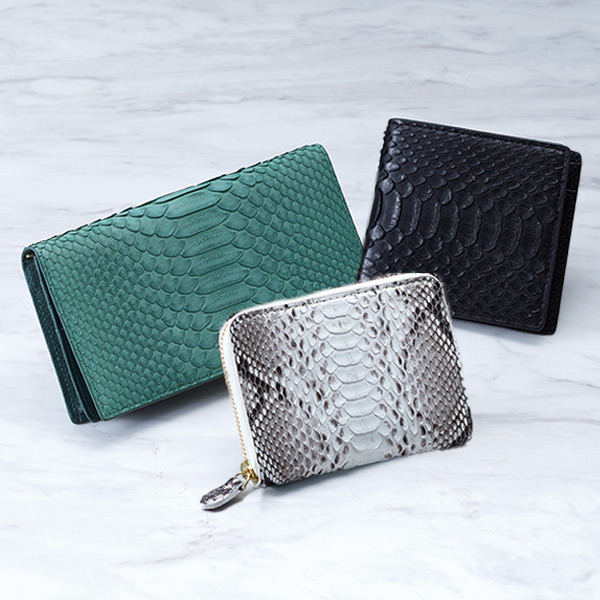 風合いを活かしマットに仕上げたダイヤモンドパイソン財布!