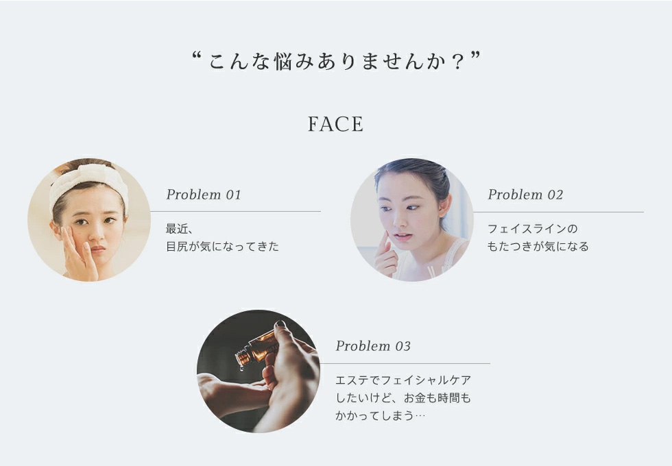 【安全に関するご注意】 ●次のような人は使用しない ・医用電気機器を使用している人(ペースメーカーなどの体内植込型医用電気機器、人工心肺などの生命維持用電気機器、心電計などの装着型医用電気機器)・心臓疾患、障害及びその疑いのある人・自分で意思表示できない人・温度や刺激の感覚が自覚できない人・妊娠初期から出産直後までの人・自己免疫疾患のある人 ●次の人はご使用前に医師にご相談ください ・急性疾患の人・感染症疾患の人・悪性腫瘍のある人・有熱性疾患の人・高血圧の人や血液疾患のある人・発熱している人 ・糖尿病などの高度な末しょう循環機能障害による知覚障害のある人・神経障害のある人・皮膚病およびアトピー性皮膚炎の人・通院して薬を服用中の人・アレルギー体質、接触性皮膚炎等、皮膚に既往症のある人や使用に際して肌に不安のある人 ●指定の部位以外や次のような部位には使用しない ・骨折をした部位・外科手術(形成、整形、美容)等で体内に金属を埋め込んだ部位・美容医療施術後に内出血や腫れ、かさぶた等の有る部位 ※施術後2週間はご使用を控えていただき、医師にご相談の上問題なければご使用いただけます。 (施術例:ヒアルロン酸注入、シリコン注入、ボトックス、糸リフト、二重整形、HIFU等) ●途中で気分が悪くなったり肌に異常があらわれた場合は、ただちに使用を中止し、治らない場合は医師に相談する ※より多くのお客様に製品を使用していただけるよう2021年12月1日より安全に関する使用者、使用部位、使用状態に関しての制限をメーカーが一部緩和しました。 順次切り替えを行っておりますが、一部製品に同梱されている取扱説明書や、webサイト上のデータに相違がある場合がございます。ご理解のほどよろしくお願いします。