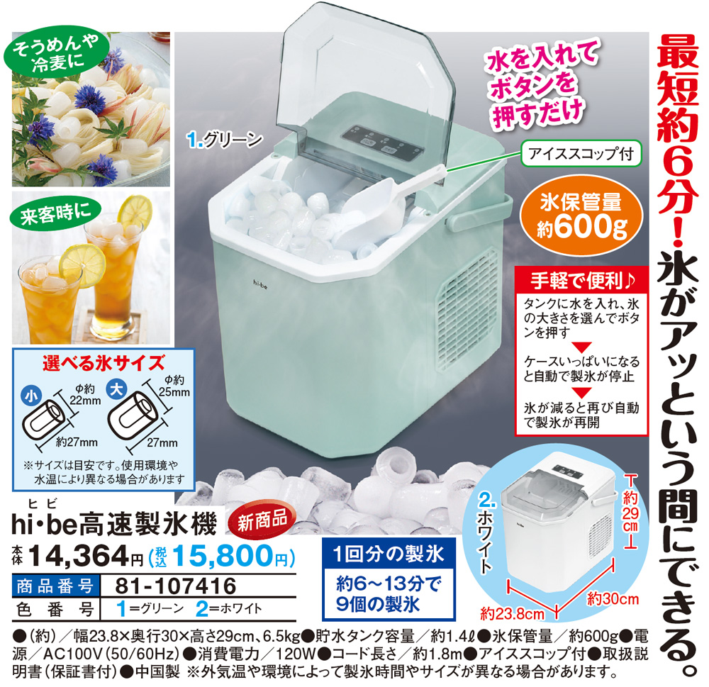 ※外気温や環境によって製氷時間やサイズが異なる場合があります。