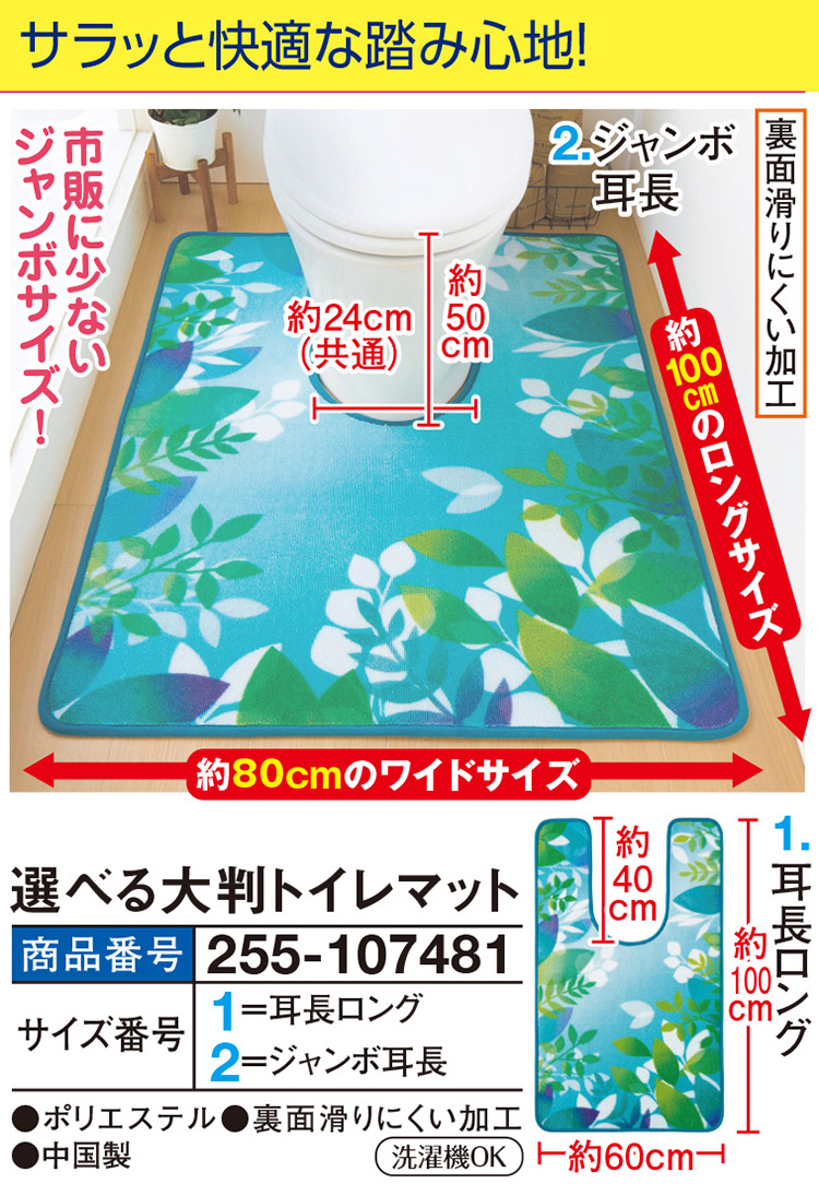 ●サイズ番号/1=耳長ロング、2=ジャンボ耳長 ●サイズ(約)/1:幅60×長さ100cm、2:幅80×長さ100cm ●ポリエステル ●裏面滑りにくい加工 ●中国製