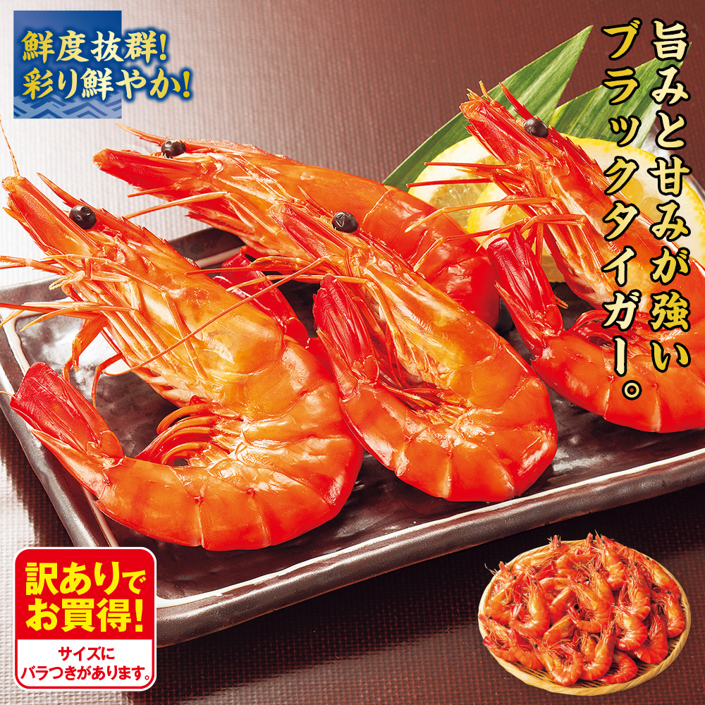 身質がしっかり歯ごたえ抜群。 旨みと甘みがとても強いブラックタイガーを鮮度を維持したまま塩ゆでしました。 鮮度抜群!彩り鮮やか! 訳ありでお買得! サイズにバラつきがあります。