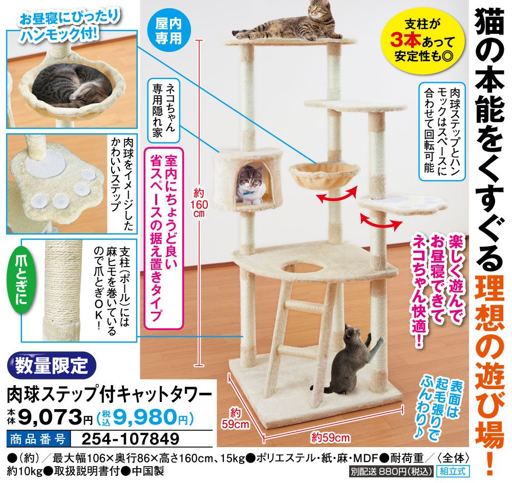 肉球ステップ付キャットタワー