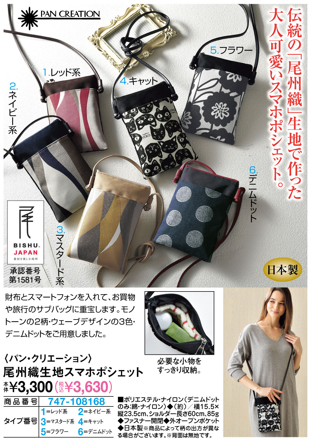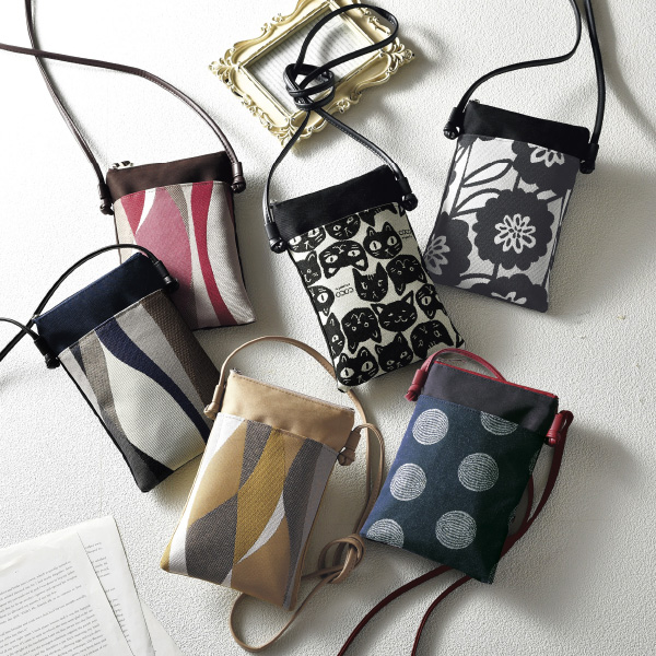 伝統の「尾州織」生地で作った大人可愛いスマホポシェット。