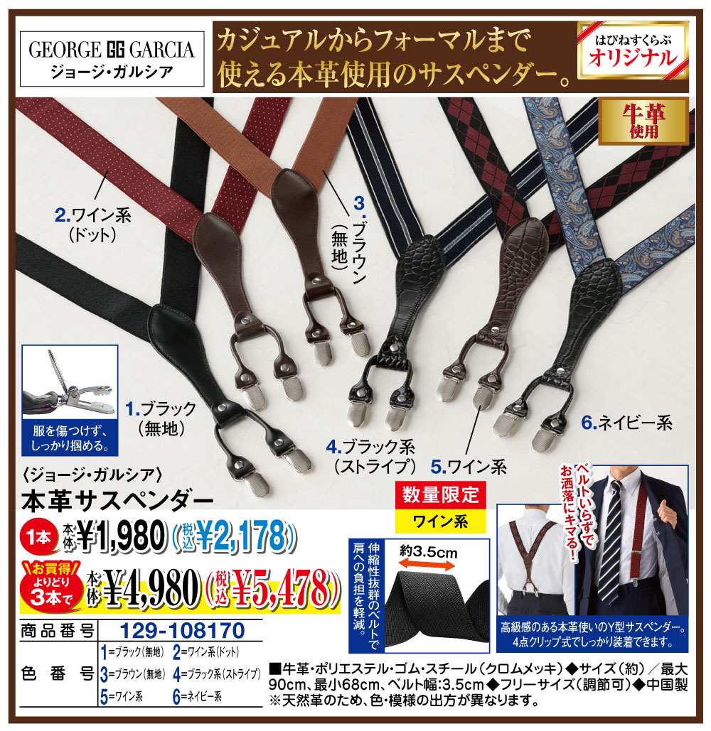 カジュアルからフォーマルまで使える本革使用のサスペンダー!
