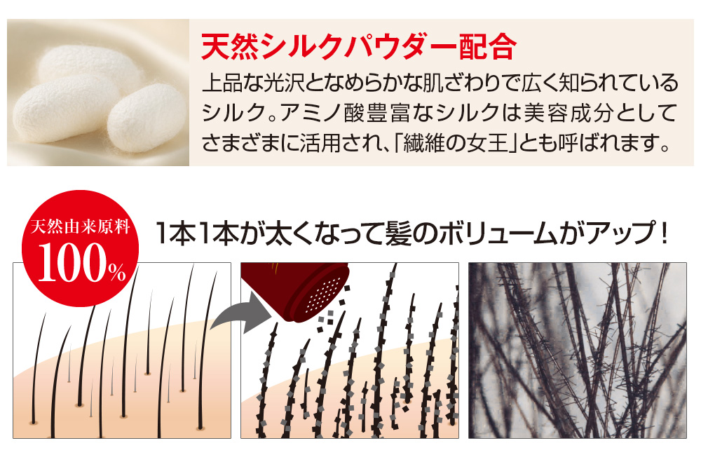 こちらは、「エンジェルショット プレミアムシルク(単品)」のページです。 「エンジェルショット(単品)」のみでは髪に定着しないため、「エンジェルショット ボリュームヘアミスト」と併用ください。 ------------ 「地肌が目立つ」「ボリュームが足りない」とお悩みの方へ <天然由来原料100%> 振りかけるだけで1本1本が太くなって髪のボリュームがアップ! \男性にも好評です/ 薄毛部分に人工毛が付着して、気になる部分を自然にカバーできます。 2色から選べます。 ●ブラック●ブラウン