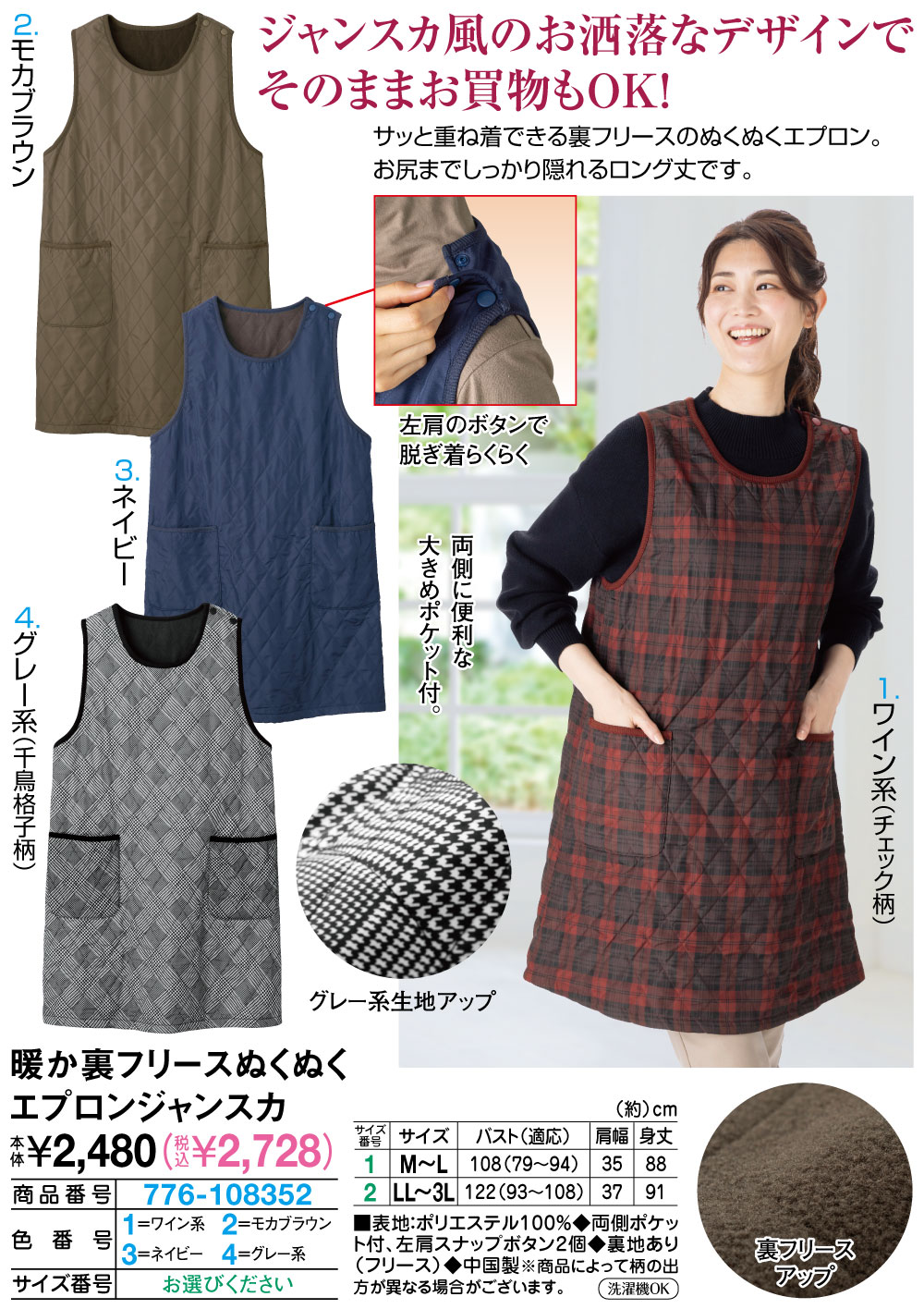 暖か裏フリースぬくぬくエプロンジャンスカ
