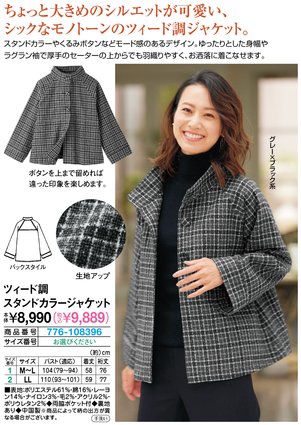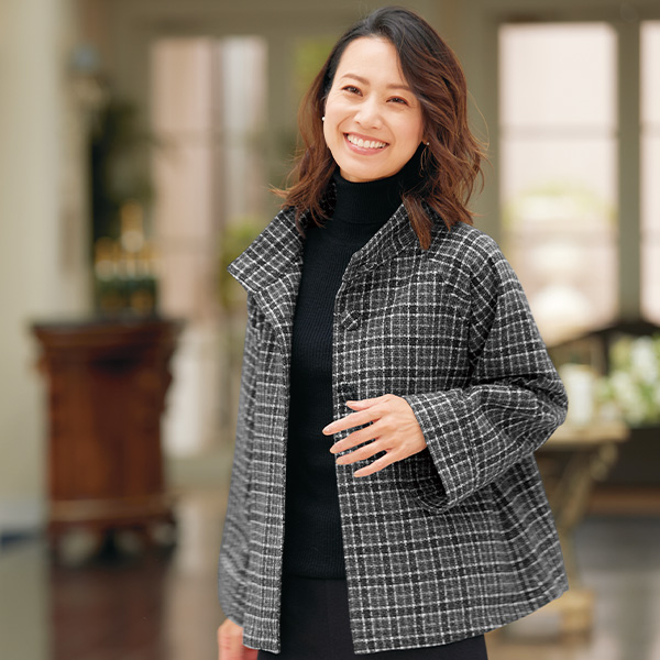 ちょっと大きめのシルエットが可愛い、シックなモノトーンのツィード調ジャケット!