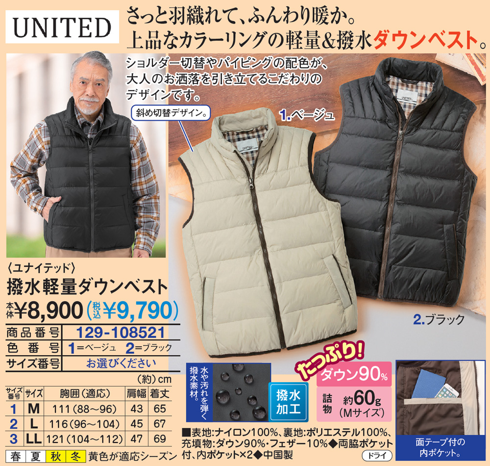さっと羽織れて、ふんわり暖か!上品なカラーリングの軽量&撥水ダウンベスト!
