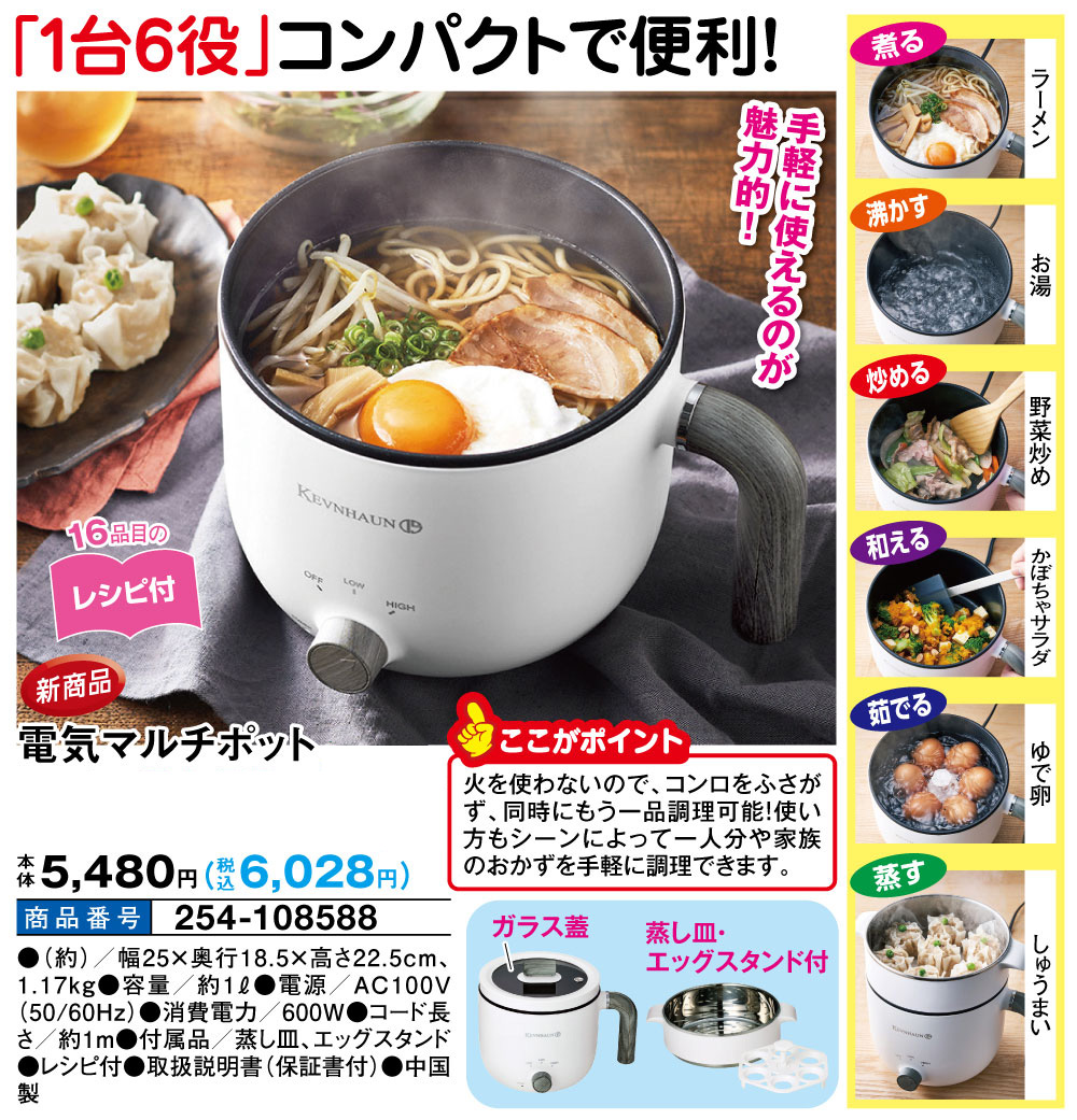 ◎手軽に使えるのが魅力的! ◎レシピ付き16品目 ◎蒸し皿・エッグスタンド付いているので、マルチな調理が可能 【ここがポイント】 火を使わないので、コンロをふさがず、同時に一品調理可能!使い方もシーンによって一人分や家族のおかずを手軽に調理できます。