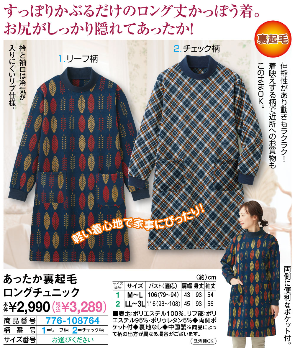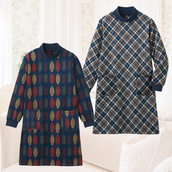 すっぽりかぶるだけのロング丈かっぽう着!お尻がしっかり隠れてあったか!