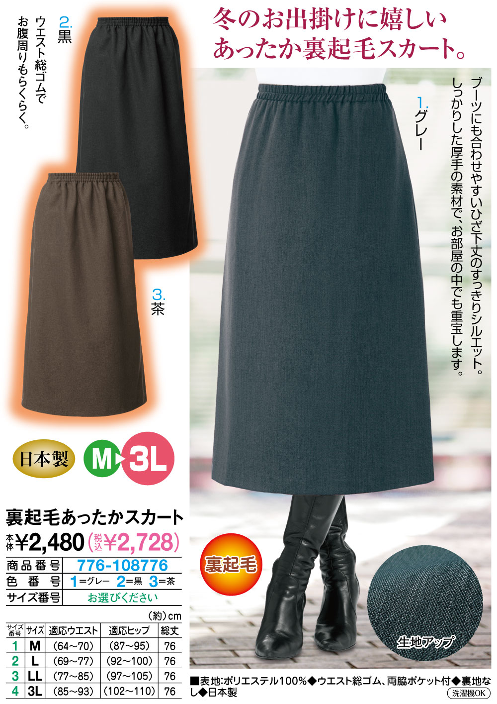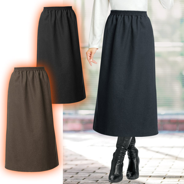 冬のお出掛けに嬉しいあったか裏起毛スカート! ブーツにも合わせやすいひざ下丈のすっきりシルエット。しっかりした厚手の素材で、お部屋の中でも重宝します。 ウエスト総ゴムでお腹周りもらくらく。 ●M~3L ●裏起毛
