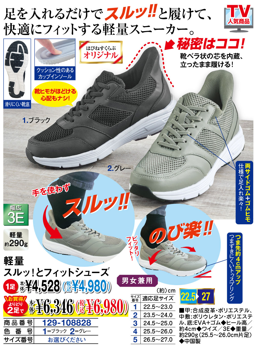 軽量 スルッ!とフィットシューズ