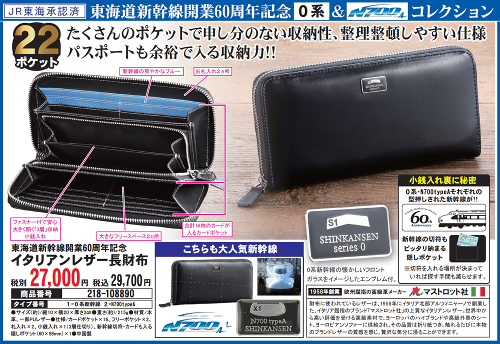 たくさんのポケットで申し分のない収納性、整理整頓しやすい仕様パスポートも余裕で入る収納力! 小銭入れ裏に秘密 0系・N700typeAそれぞれの型押しされた新幹線が! 新幹線の切符もピッタリ納まる隠しポケット ※切符を入れる場所が決まっていれば探す手間も減らせます。 欧州屈指の高級革メーカー マストロット社 財布に使われているレザーは、1958年にイタリア北部アルツィニャーノで創業した、イタリア屈指のブランド「マストロット社」の上質なイタリアンレザー。 世界中から高い評価を受ける高級素材で、ヨーロッパのハイブランドや高級外車のシート、ヨーロピアンソファーに供給され、その品質は折り紙つき。 触れるたびに本物のブランドレザーの質感を感じ、贅沢な気分に浸ることができます。 ファスナー付で安心!大きく開く「3層」収納小銭入 大きなフリースペース2ヵ所 お札入れ2ヵ所 合計16枚のカードが入るカードポケット