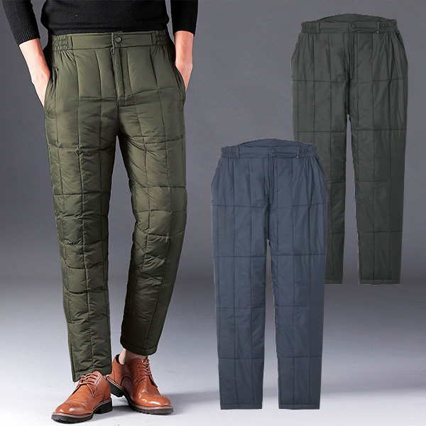 【サイズ(約)】 適応胴囲、前股上、後股上、総丈、裾幅 <L>(68~78)cm、34cm、40cm、97cm、18cm <XL>(72~82)cm、35cm、42cm、99cm、18.5cm <2XL>(76~86)cm、37cm、43cm、100cm、19cm <3XL>(80~90)cm、38cm、44cm、103cm、19.5cm <4XL>(84~94)cm、39cm、45cm、105cm、20cm ■表地・裏地:ポリエステル100%、中わた:ダウン90%・フェザー10% ◆ウエスト両脇ゴム、ベルト通し付、前開き(ボタン留め+ファスナー付)、両脇ポケット付 ◆中国製