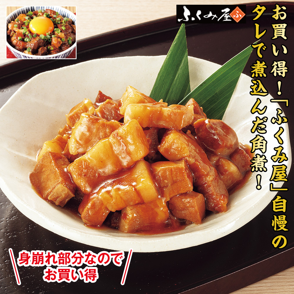 「ふくみ屋」自慢のタレで煮込んだ角煮! 身崩れ部分なのでお買い得。