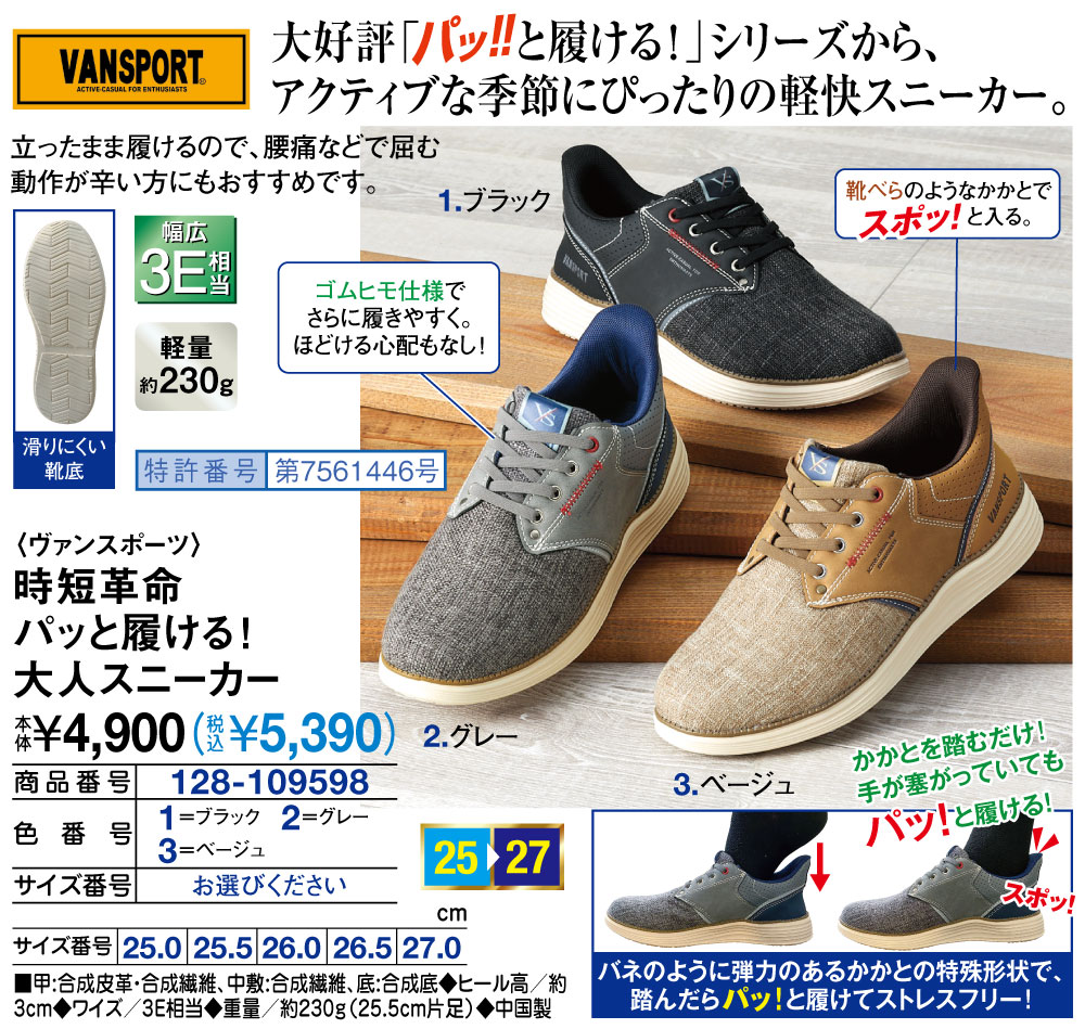 ヴァンスポーツ 時短革命パッと履ける!大人スニーカー