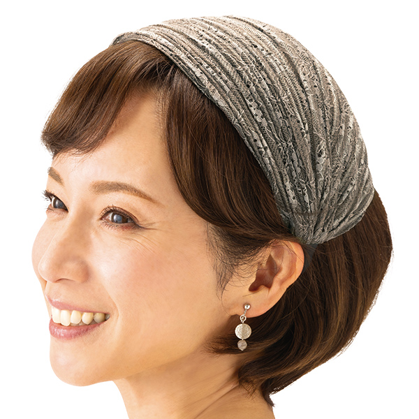 髪の悩みをお洒落にカバー! 気になる白髪や薄毛も隠せる、エレガントな幅広レースカチューシャ。 お悩み:気になる薄毛や白髪 サッと着けられてお洒落にヘアアレンジ! お好みの幅に調節可能。 広げればつむじまで、すっぽりカバー。 柔らかな芯材で頭にフィット。 先端はズレにくいシリコーンカバー付。 急な来客にも