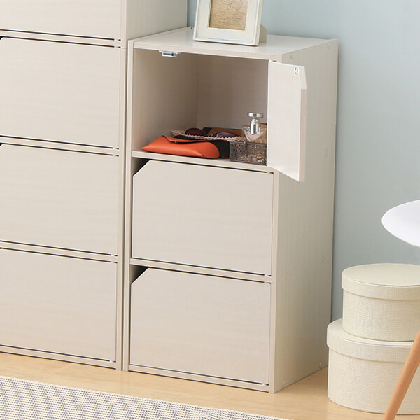 中身が隠せる扉付ボックス!用途に応じてタテ・ヨコ置きに! お部屋に馴染むお洒落な木目調 留め具にマグネット付で開閉ラクラク ●内寸1段(約)/幅34.2×奥行26×高さ22.6cm ●横置きでも
