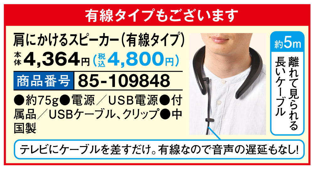 テレビにケーブルを差すだけ!有線なので音声の遅延もなし! 約5mの離れて見られる長いケーブル