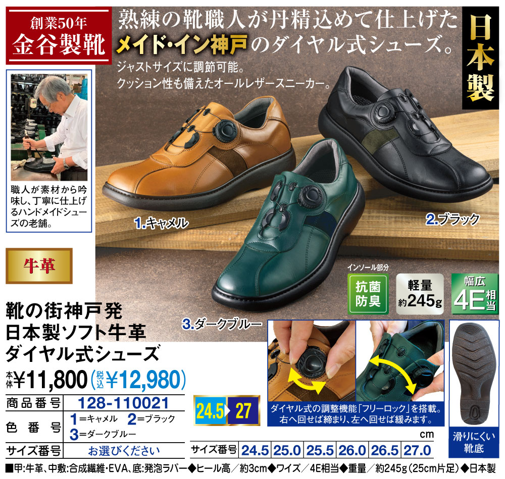 靴の街神戸発 日本製ソフト牛革ダイヤル式シューズ
