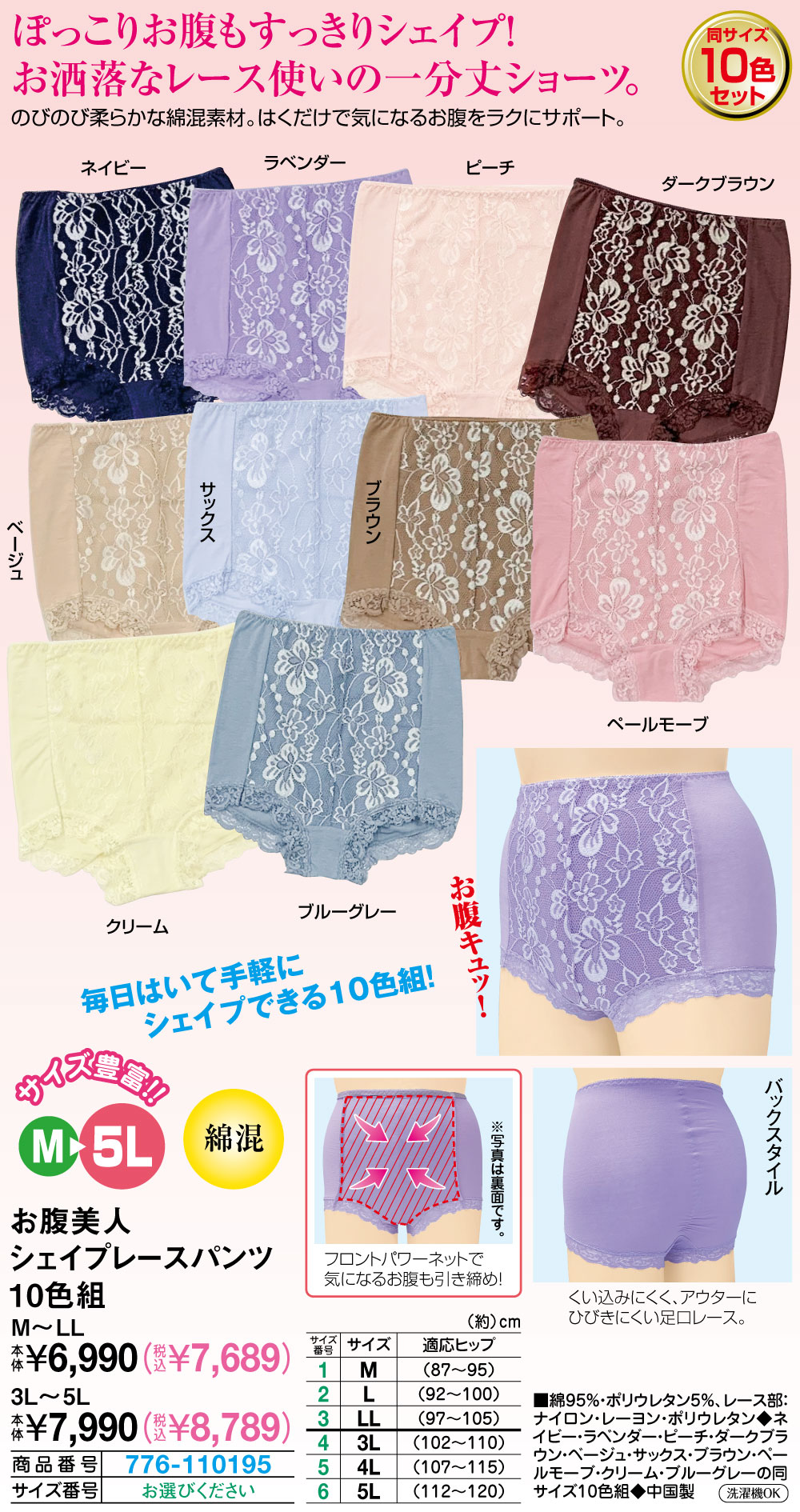 お腹美人シェイプレースパンツ10色組