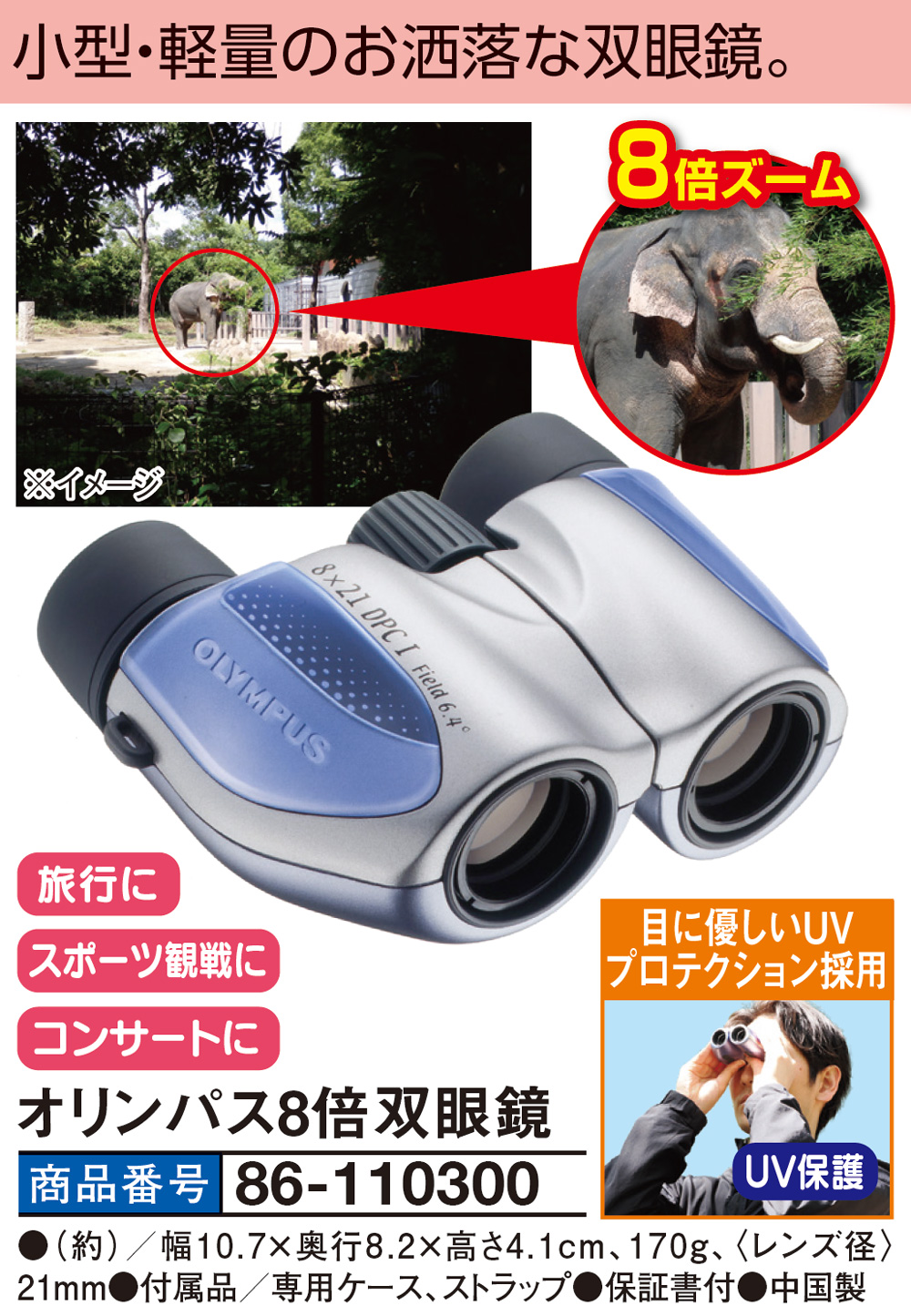 ●(約)/幅10.7×奥行8.2×高さ4.1cm、170g、<レンズ径>21mm ●付属品/専用ケース、ストラップ ●保証書付 ●中国製