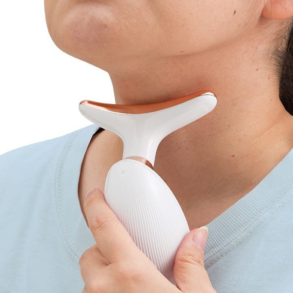 振動ケアで「老けたるみ」にバイバイ! 老け見えするフェイスラインのゆるみに! 毎日お手軽ケア。 気になる年齢サイン。 微振動で心地よく刺激! ●首筋 ●頬 ●あご 緩やかなカーブがフェイスラインにフィット! ボタン1つで簡単操作! 化粧水や美容液のお供に ●フェイスラインケア