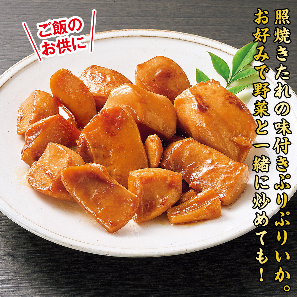 照焼きたれの味付きぷりぷりいか。お好みで野菜と一緒に炒めても! ご飯のお供に。