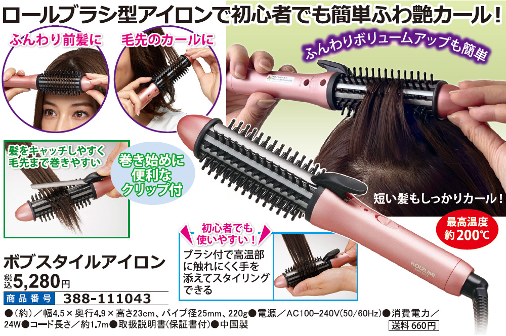 ロールブラシ型アイロンで初心者でも簡単ふわ艶カール! ◎ふんわり前髪に◎毛先のカールに。 ふんわりボリュームアップも簡単。