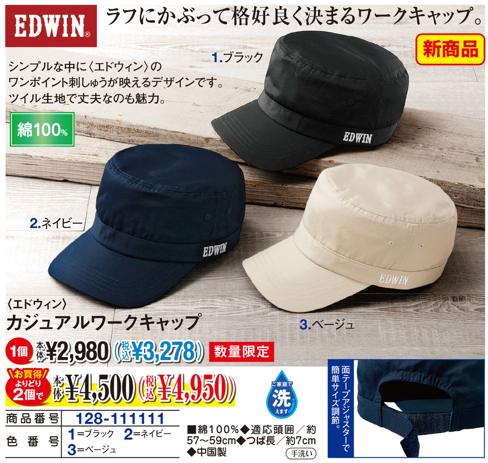 シンプルな中に<エドウィン>のワンポイント刺しゅうが映えるデザインです。