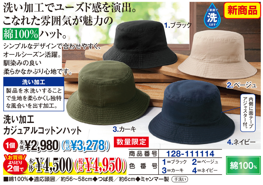 洗い加工でユーズド感を演出。こなれた雰囲気が魅力の綿100%ハット!
