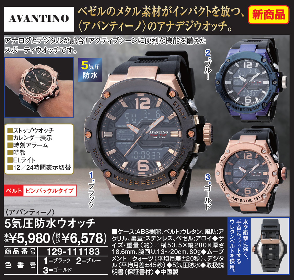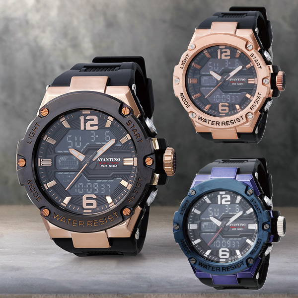 ベゼルのメタル素材がインパクトを放つ、<アバンティーノ>のアナデジウオッチ!