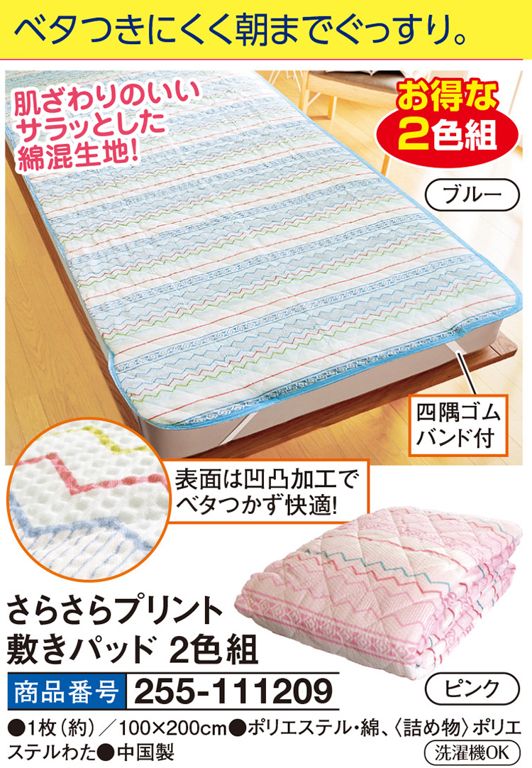 ベタつきにくく朝までぐっすり! 肌ざわりのいいサラッとした綿混生地! 表面は凹凸加工でベタつかず快適! 四隅ゴムバンド付 ●お得な2色組