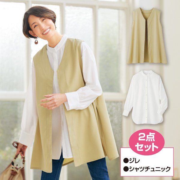 ジレ&バンドカラー シャツチュニックセット