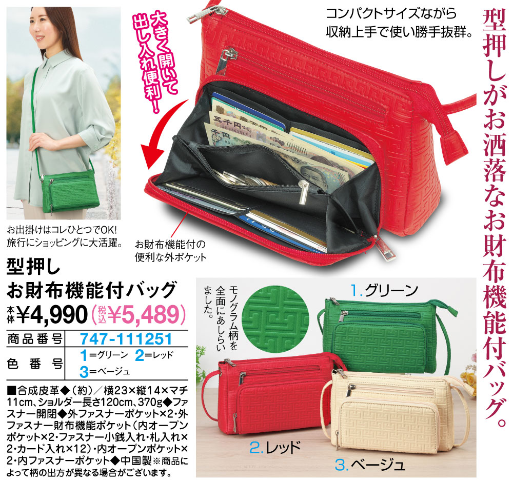 ◆外ファスナーポケット×2・外ファスナー財布機能ポケット(内オープンポケット×2・ファスナー小銭入れ・札入れ×2・カード入れ×12)・内オープンポケット×2・内ファスナーポケット