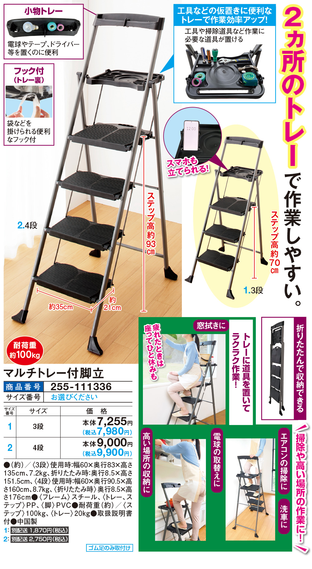 ●耐荷重(約)/<ステップ>100kg、<トレー>20kg