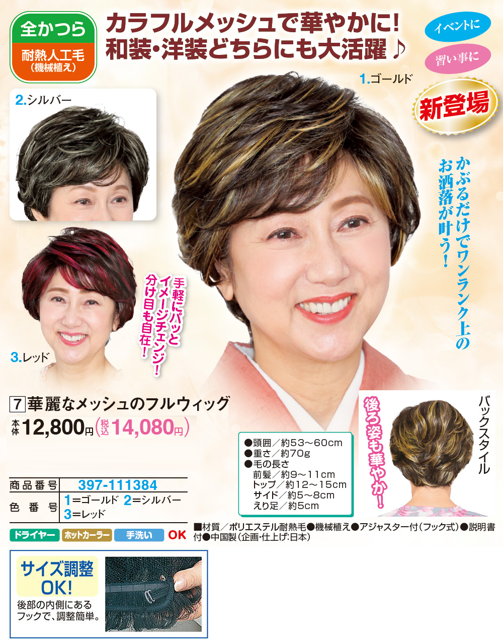 カラフルメッシュで華やかに!和装・洋装どちらにも大活躍! かぶるだけでワンランク上のおしゃれが叶う。 手軽にパッとイメージチェンジ!分け目も自由自在!