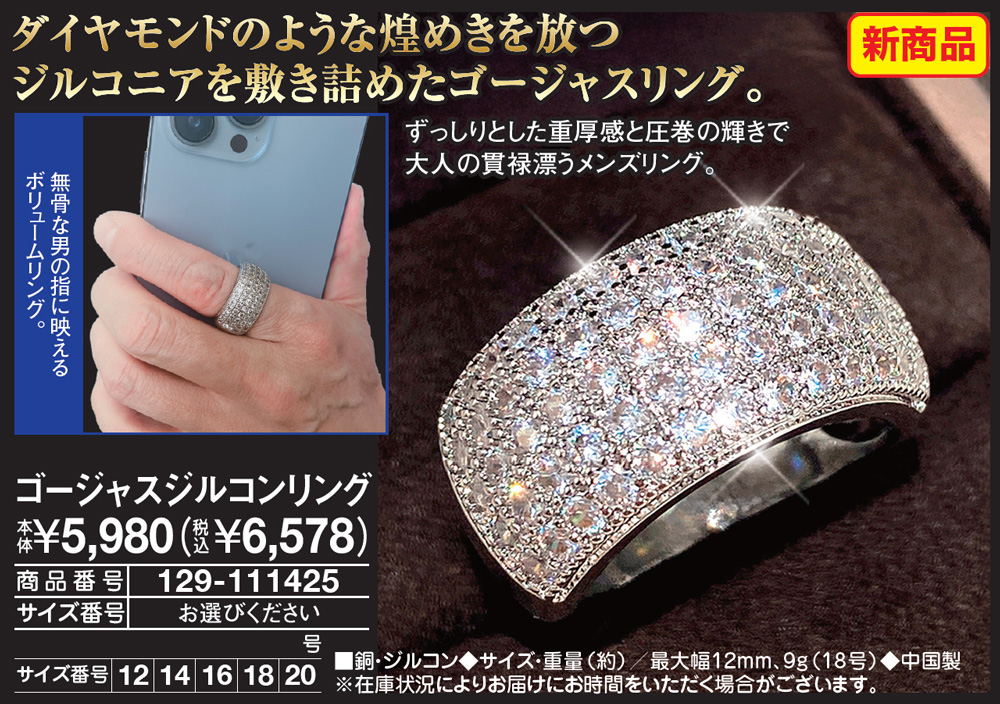 ■銅・ジルコン ◆サイズ・重量(約)/最大幅12mm、9g(18号) ◆中国製