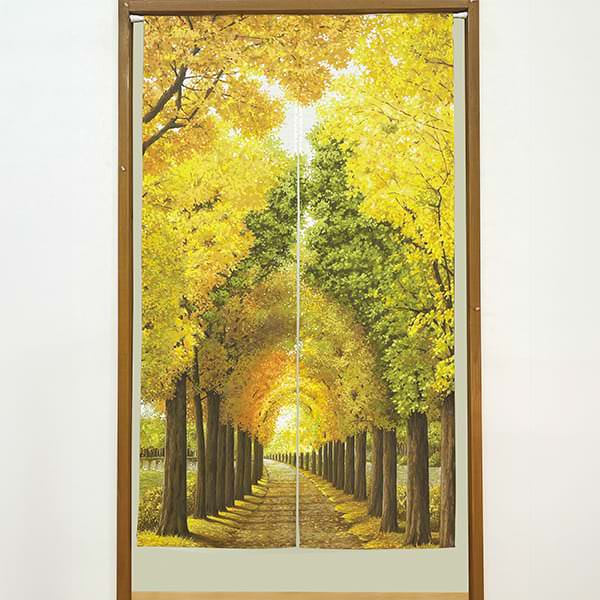 お部屋に合わせて選べるのれん! ●秋の並木道(約85×150cm) やさしい水彩タッチで描かれた紅葉の並木道に癒やされるのれん。 絵画のような風合いが、お部屋の雰囲気を引き立てます。