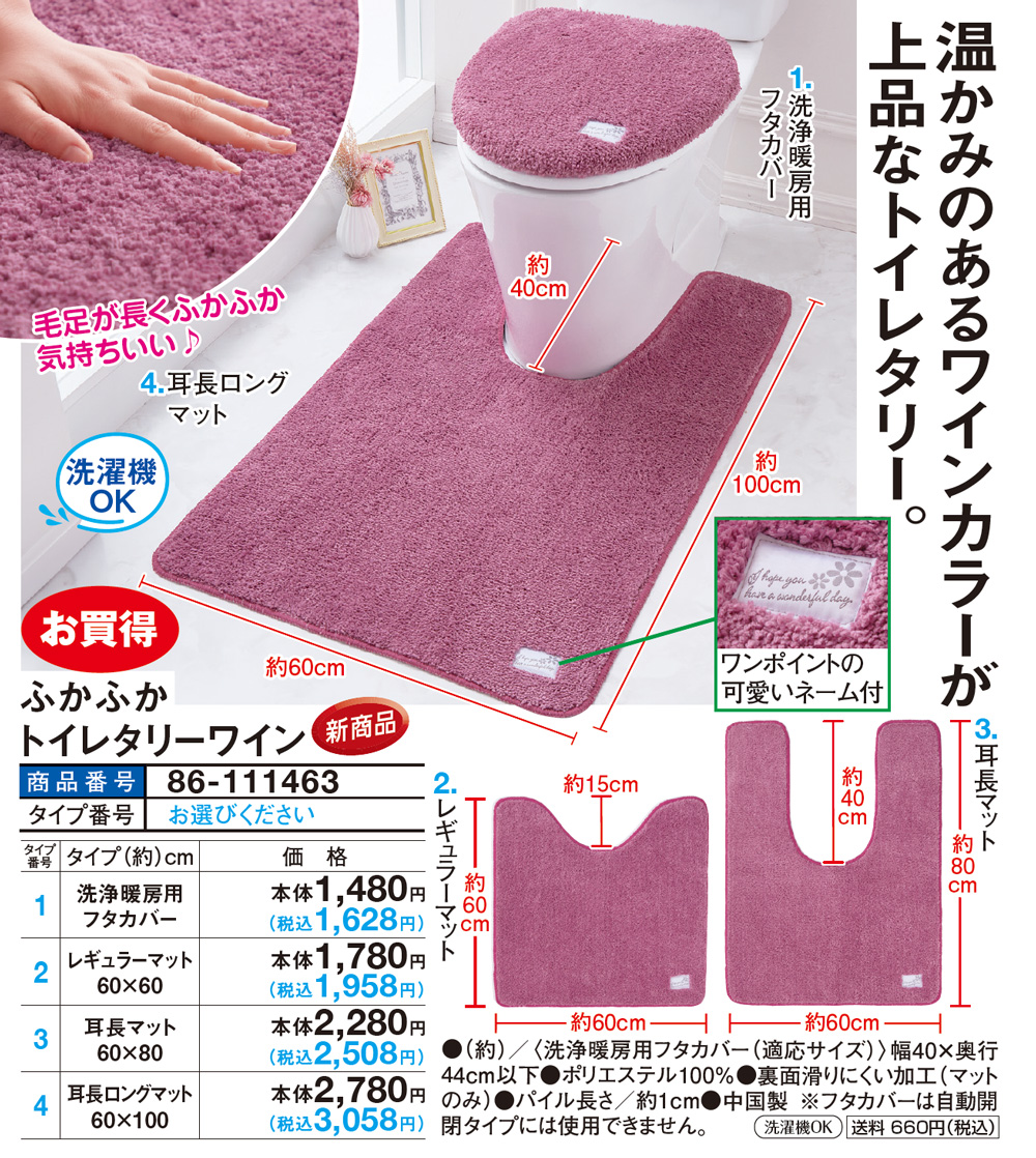 温かみのあるワインカラーが上品なトイレットタリー! 毛足が長くふかふか気持ちいい♪ ワンポイントの可愛いネーム付