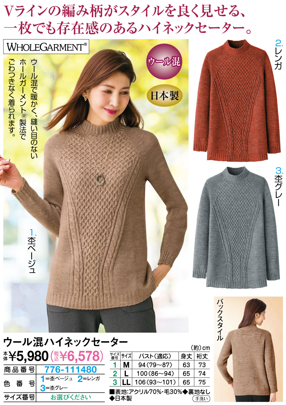 ウール混で暖かく、縫い目のないホールガーメント(R)製法でごわつきなく着られます。