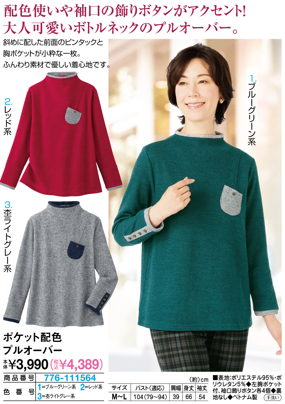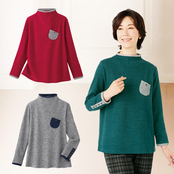 配色使いや袖口の飾りボタンがアクセント!大人可愛いボトルネックのプルオーバー!