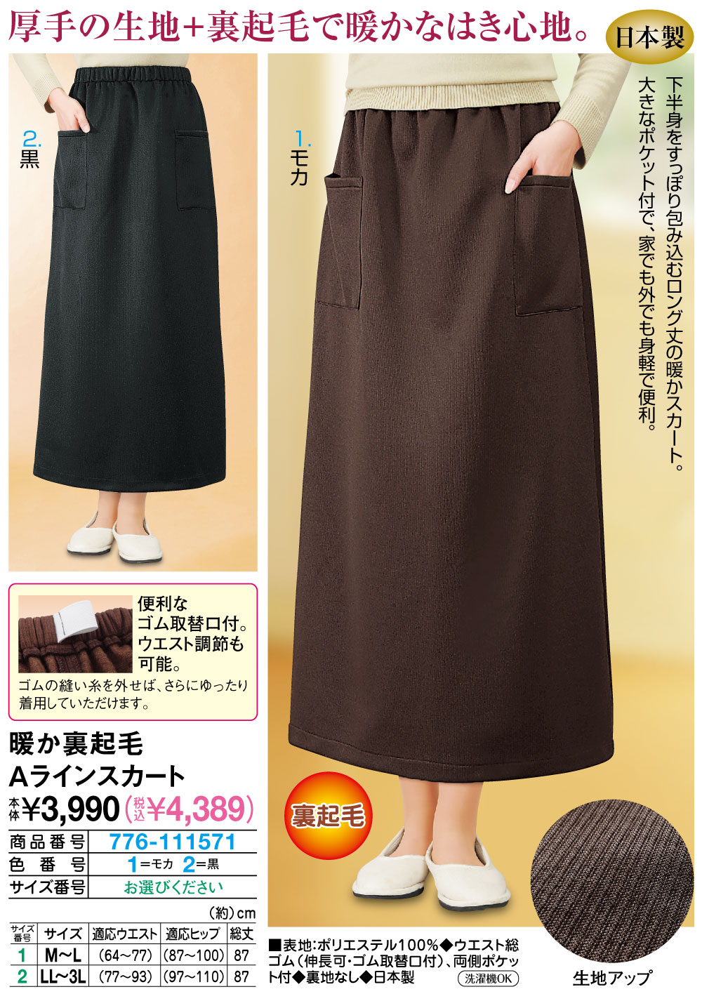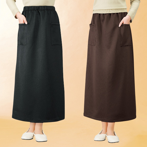 下半身をすっぽり包み込むロング丈の暖かスカート。