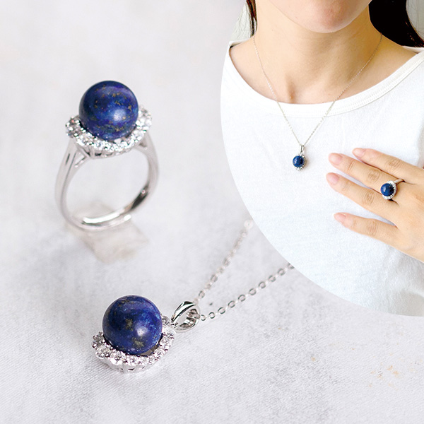 神秘的な瑠璃色が美しい、大粒のラピスラズリ! ラピスラズリを囲むキュービックジルコニアの贅沢な輝きで、よりゴージャスな印象に。 【ラピスラズリ】成功・幸運・直感力 リングはどの指にも合うフリーサイズ仕様。 (適応リングサイズ11~16号) ●2点セット(ペンダント・リング) ●贈り物にも
