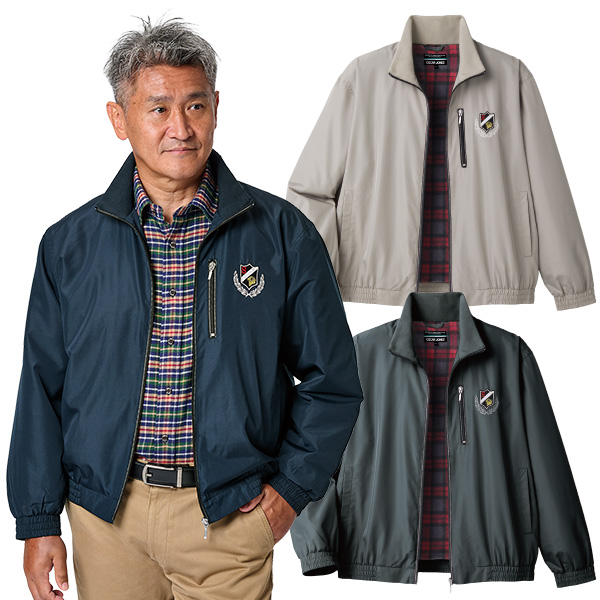 裏フリースで暖かい!エンブレム刺しゅうがアクセントのカジュアルブルゾン!