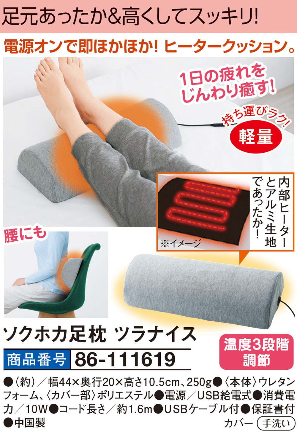 足元あったか&高くしてスッキリ! 電源オンで即ほかほか!ヒータークッション。 1日の疲れをじんわり癒す! 持ち運びラク! 内部ヒーターとアルミ生地であったか!※イメージ 【腰にも】 ●軽量 ●温度3段階調節