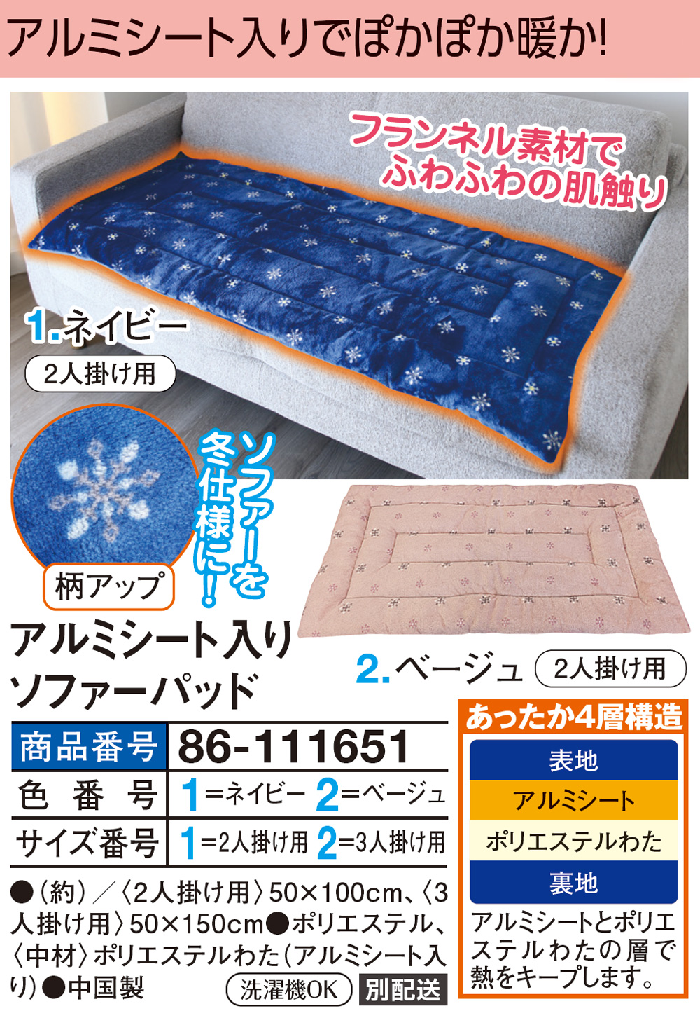 裏地/アルミシートとポリエステルわたの層で熱をキープします。
