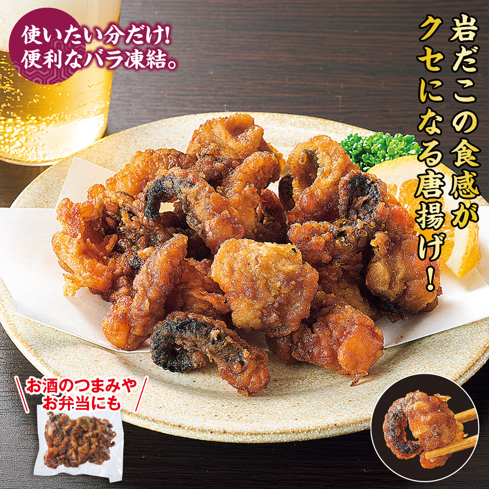 使いたい分だけ!便利なバラ凍結。 やわらかな食感の岩だこを、ジューシーでプリプリ感が楽しめる唐揚げに仕上げました。 お酒のつまみやお弁当にも。