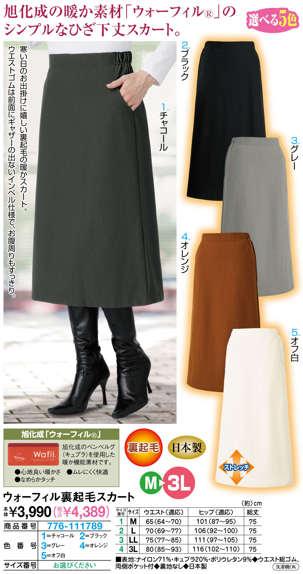 旭化成の暖か素材「ウォーフィル(R)」のシンプルなひざ下丈スカート!