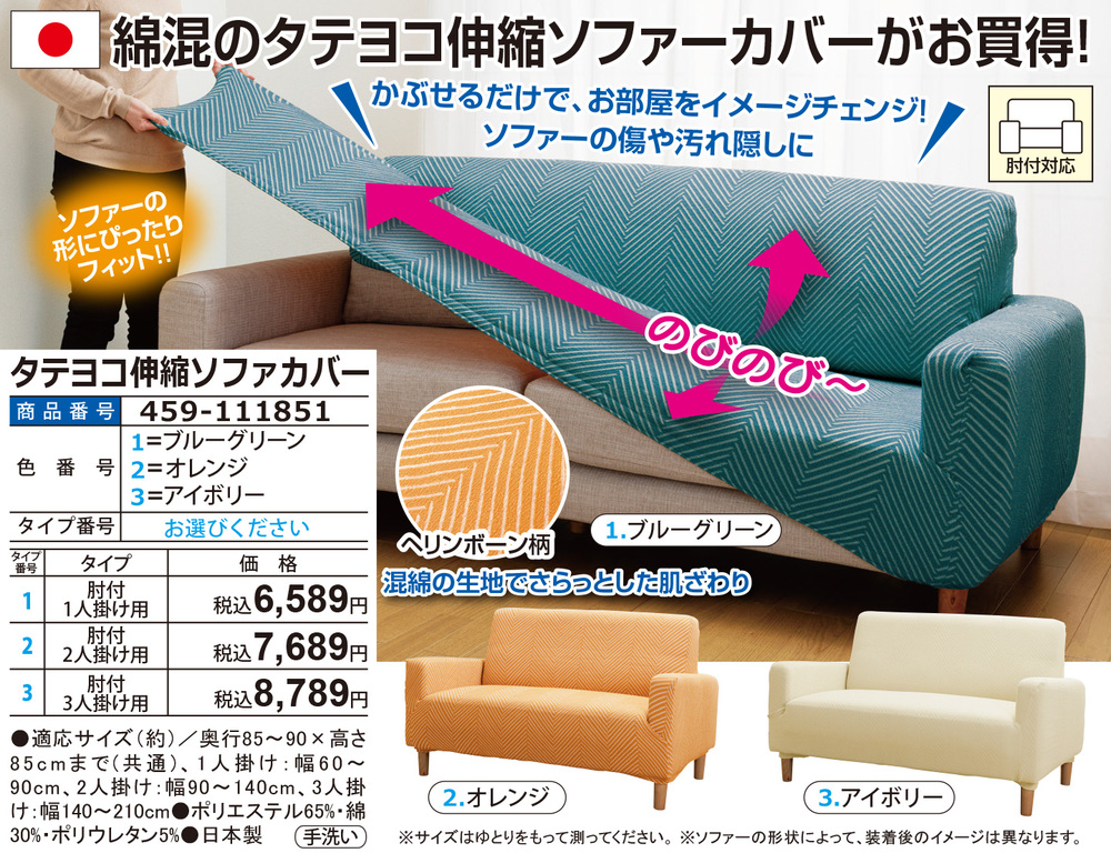 綿混のタテヨコ伸縮ソファーカバーがお買得!